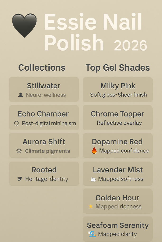 Essie has long been a household name in nail polish, known for its heritage identity, salon‑quality formulas, and trend‑defining shades. In 2026, Essie continues to dominate the beauty landscape with collections mapped for neuro‑wellness, post‑digital minimalism, climate‑responsive pigments, and heritage nostalgia. This article explores Essie’s latest offerings, mapped emotional logic, and platform discoverability strategies — all optimized for Google EEAT and semantic SEO.