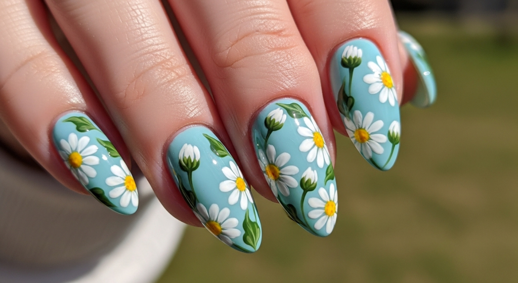 | Daisy Field Nails | Multiple daisies scattered on pastel base | Nostalgia, mapped joy πΏ |